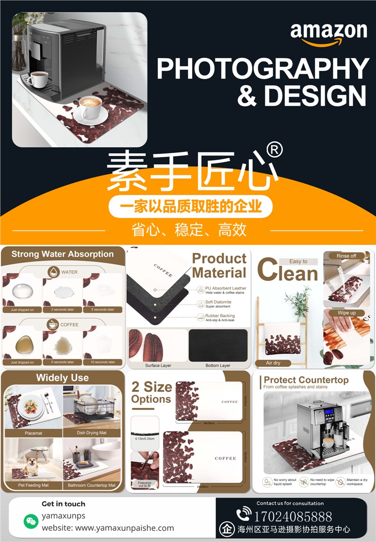 商业级亚马逊产品拍摄设计精修建模渲染视频-咖啡机垫子@素手匠心