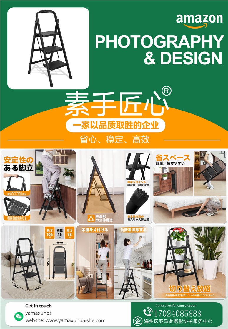 商业级亚马逊产品拍摄设计精修建模渲染视频-三层梯子@素手匠心