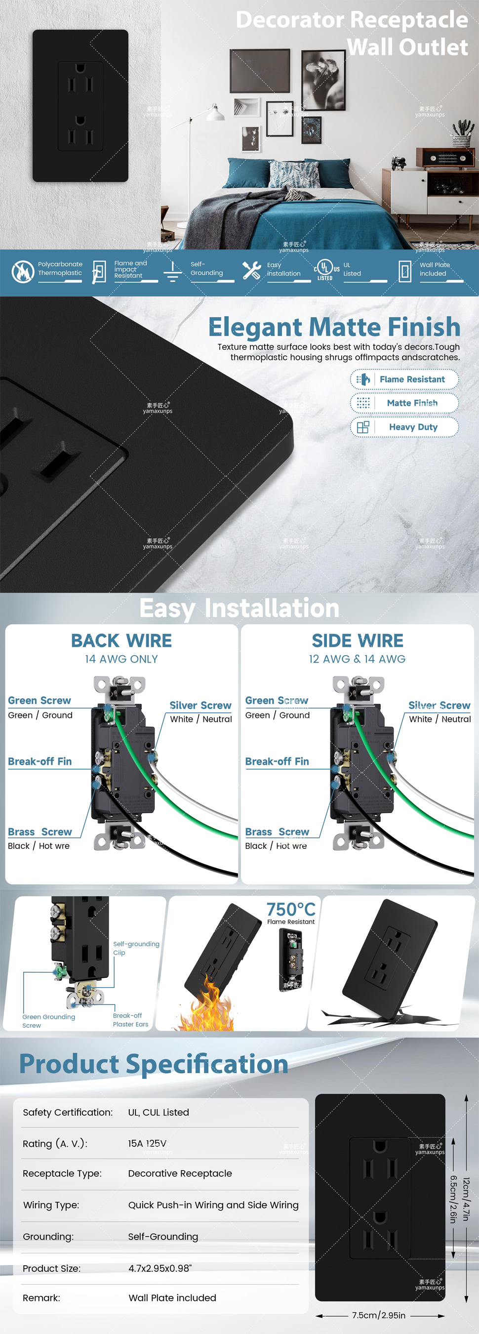 商业级亚马逊产品拍摄设计精修建模渲染视频-黑色插座A+@素手匠心
