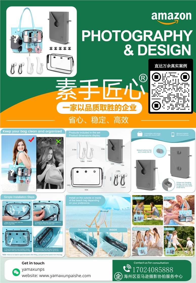 商业级亚马逊产品拍摄设计精修建模渲染视频-沙滩包配件@素手匠心