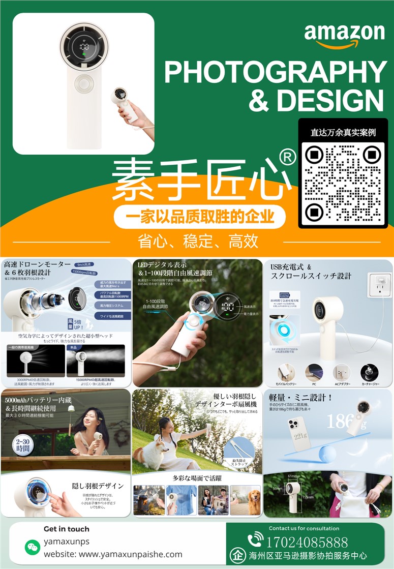 商业级亚马逊产品拍摄设计精修建模渲染视频-手持风扇@素手匠心
