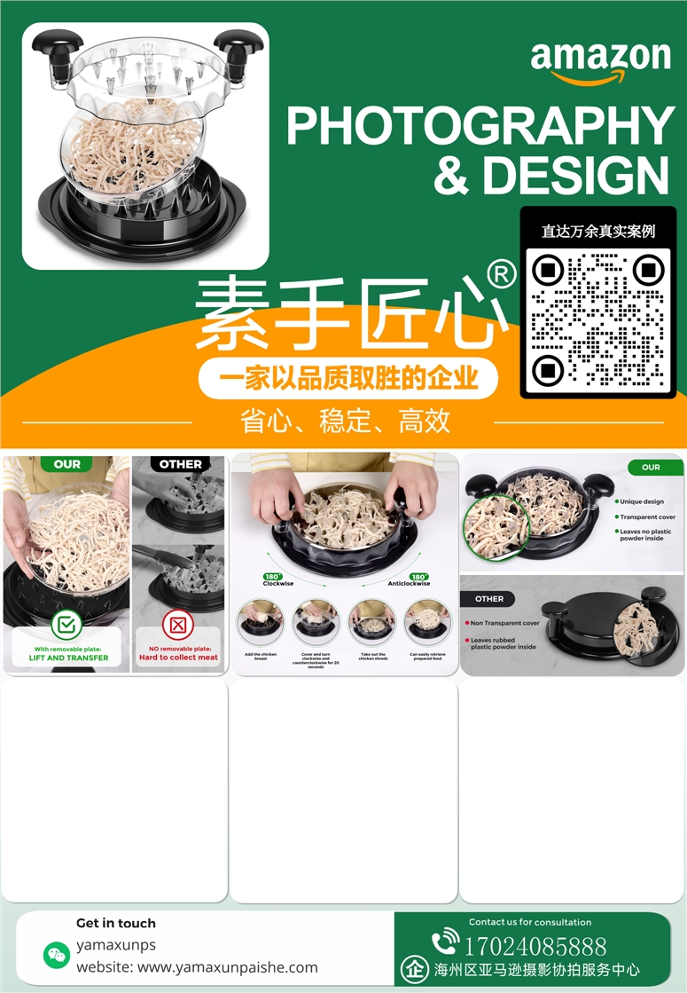 亚马逊产品拍摄设计主图A+视频建模渲染精修-手撕鸡肉器黑