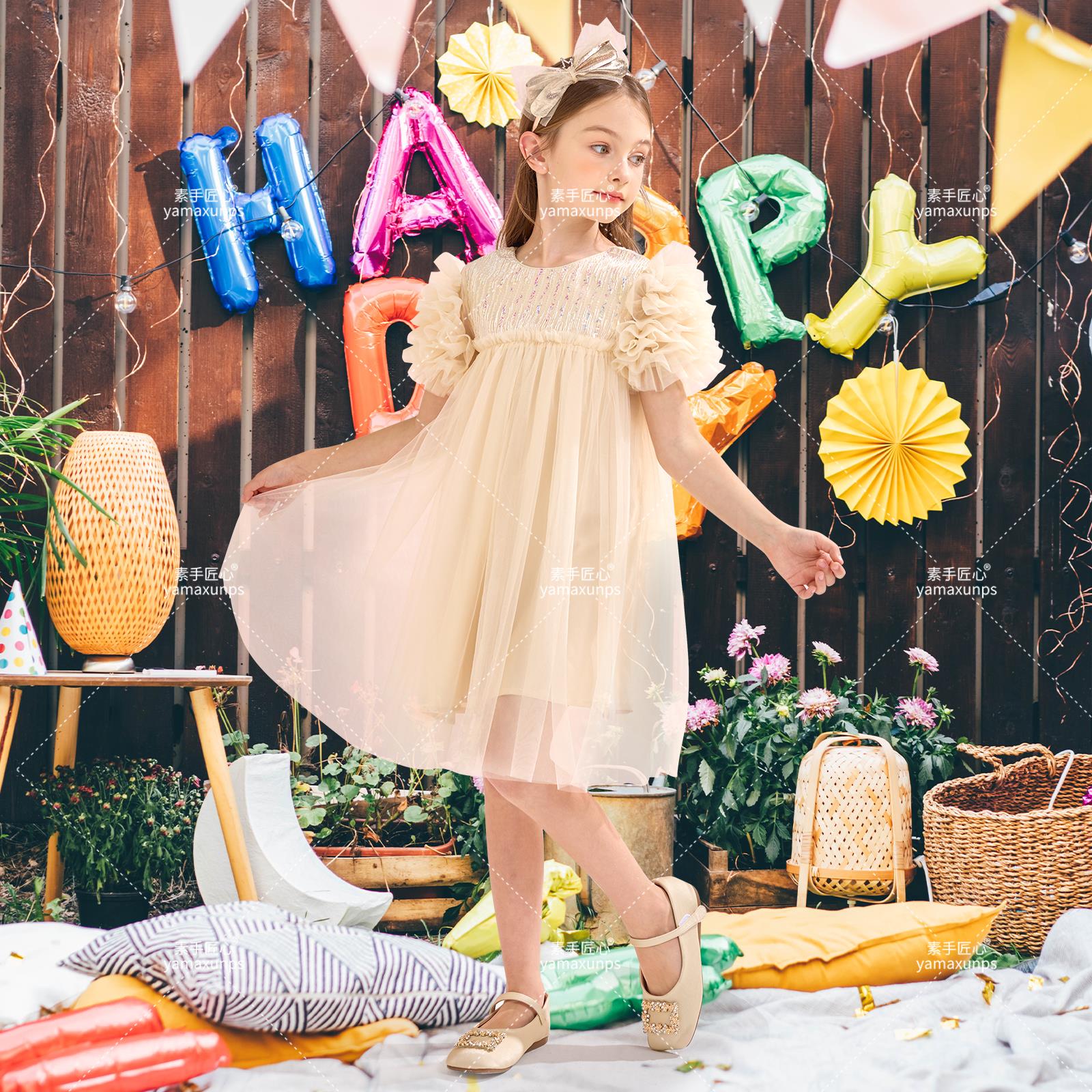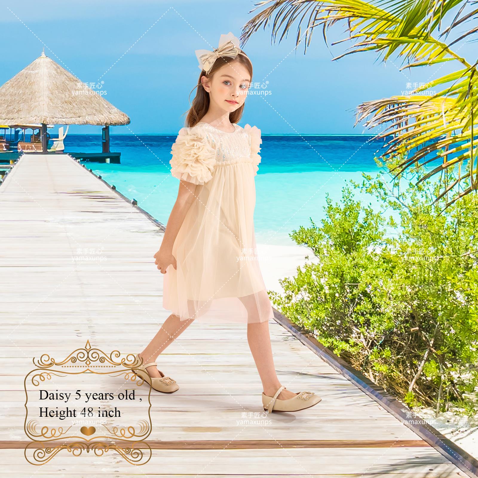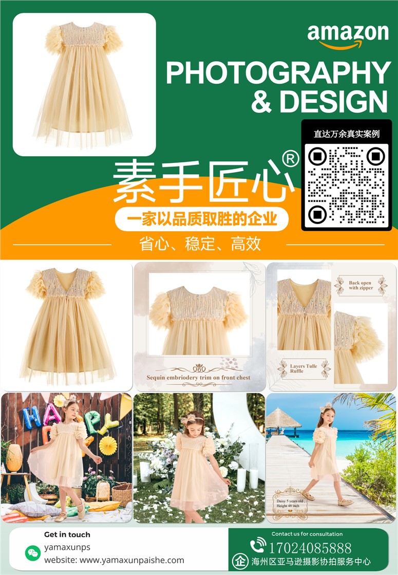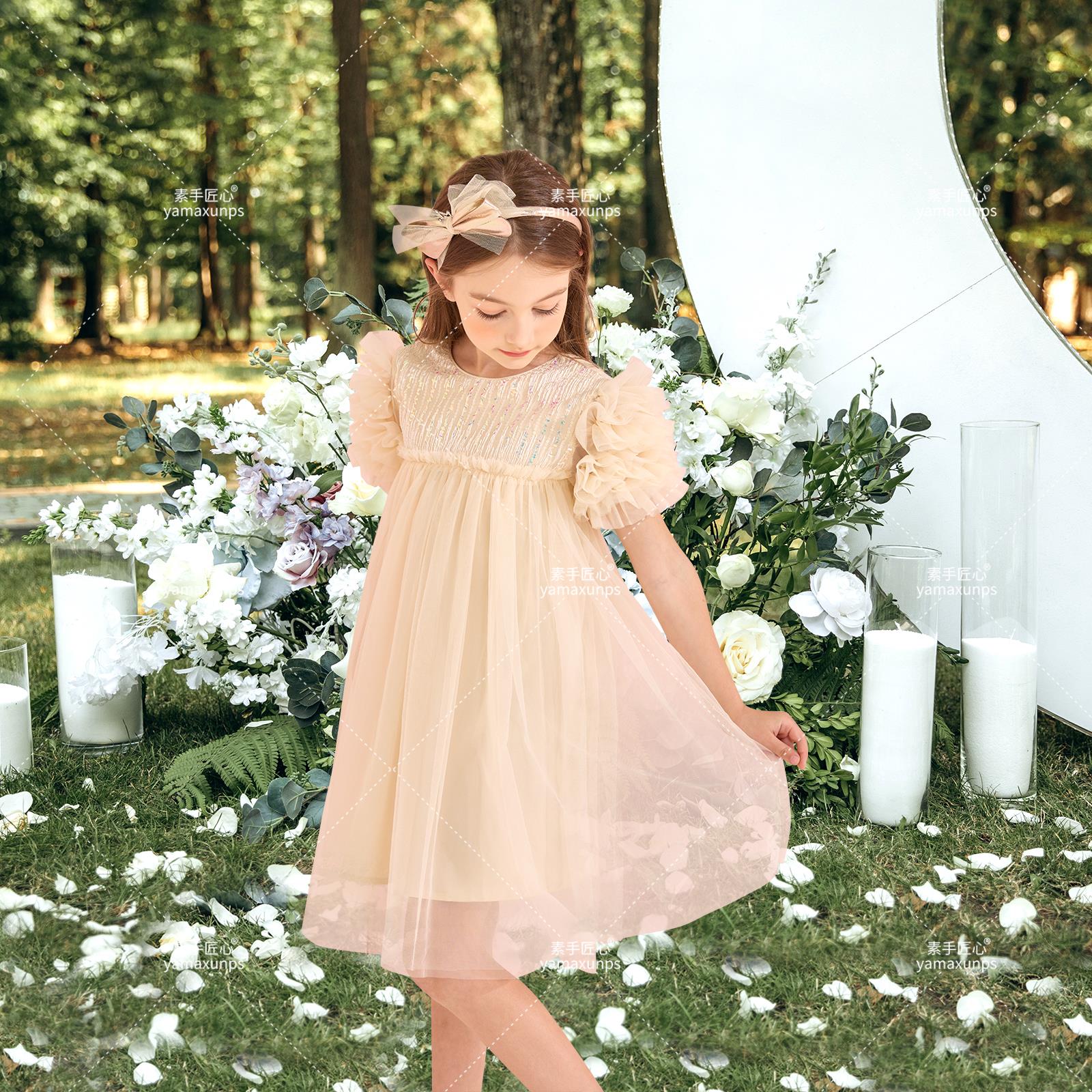 亚马逊产品拍摄设计主图A+视频建模渲染精修-童装连衣裙杏色